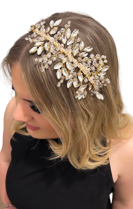 1950’s inspired gold crystal side headband
