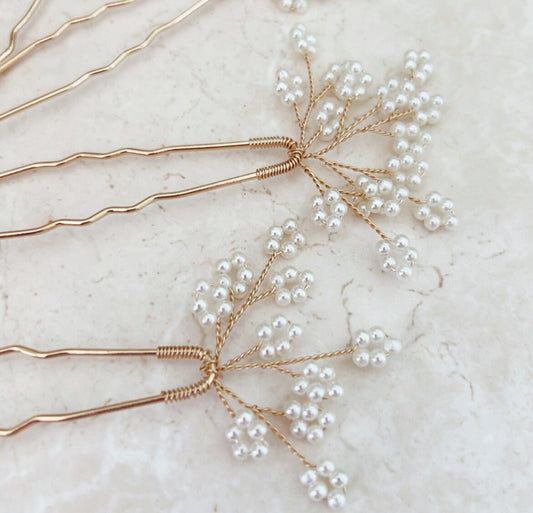 Beaded Gypsophila Bridal Hair Pins