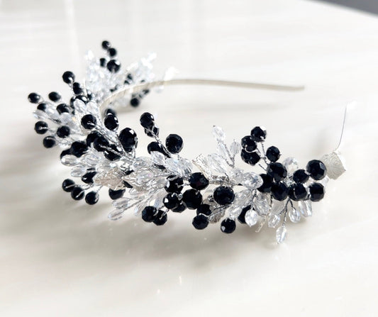 Sold outBlack and silver crystal headband