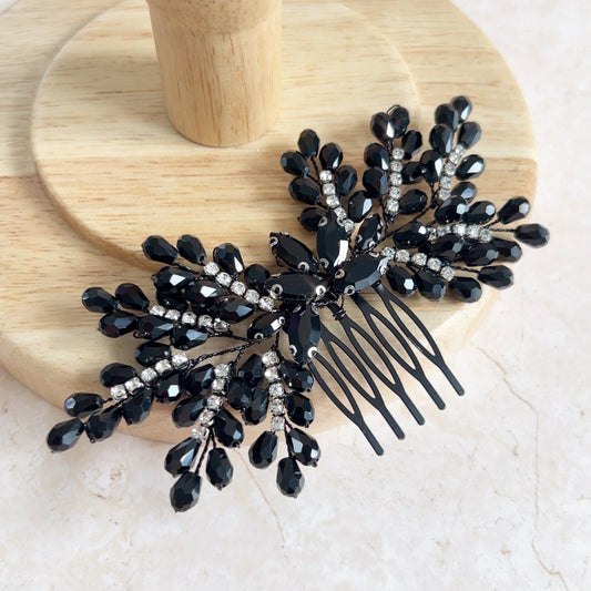 Black bow crystal hair comb